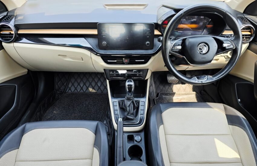 Presenting the Skoda Slavia Style 1.0 TSI AT (2023) — a premium mid-size sedan known for its powerful turbo petrol engine, smooth automatic gearbox, spacious cabin, and solid build quality.